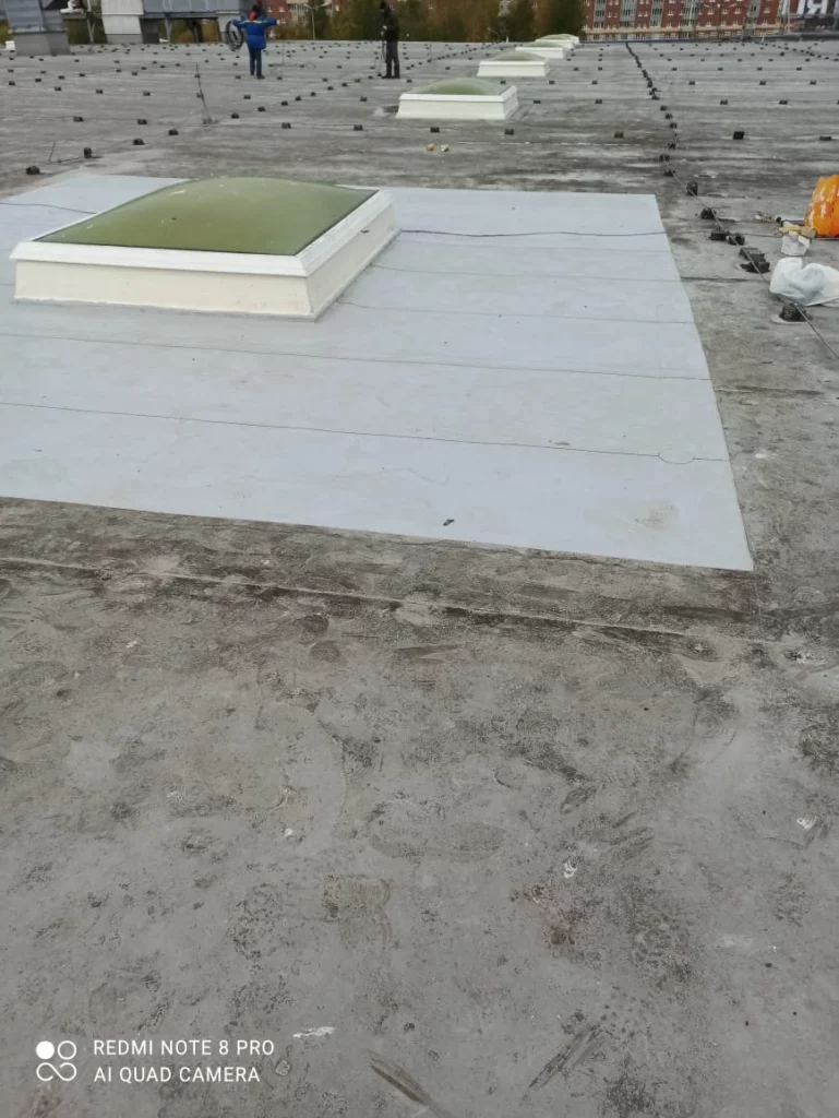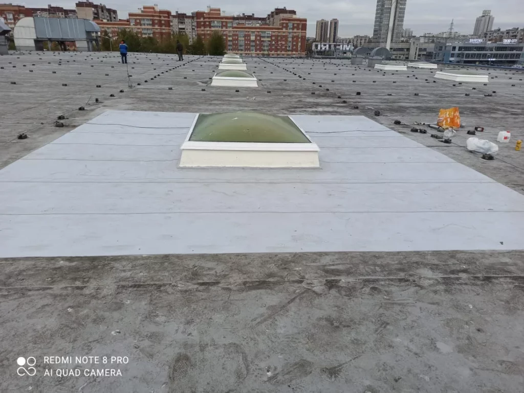 “Работали весной. Приходилось топить оставшуюся ледовую корку на поверхности мембраны. Нашли несколько повреждений в зоне работ. Устранили их и смонтировали огнезащиту“