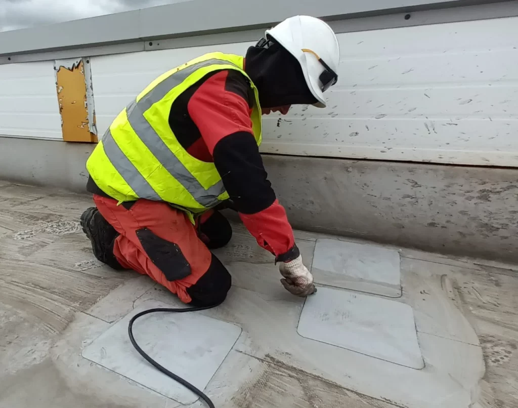 Установка заплат на рулонную кровлю на заводе GM