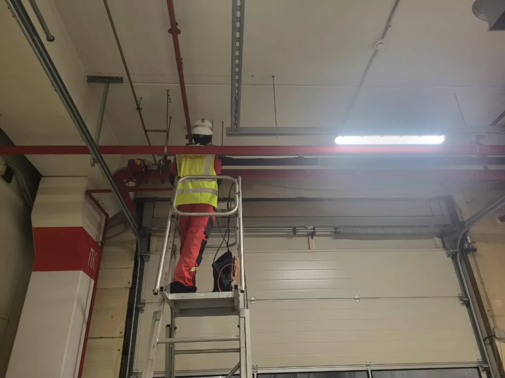 “Высота кровли в помещении, где протекала воронка, была небольшой, поэтому мы обошлись без наших промальпинистов. Заменили воронку изнутри с лестницы, используя страховочную привязь и пятиточечные пояса. Типовая задача“.