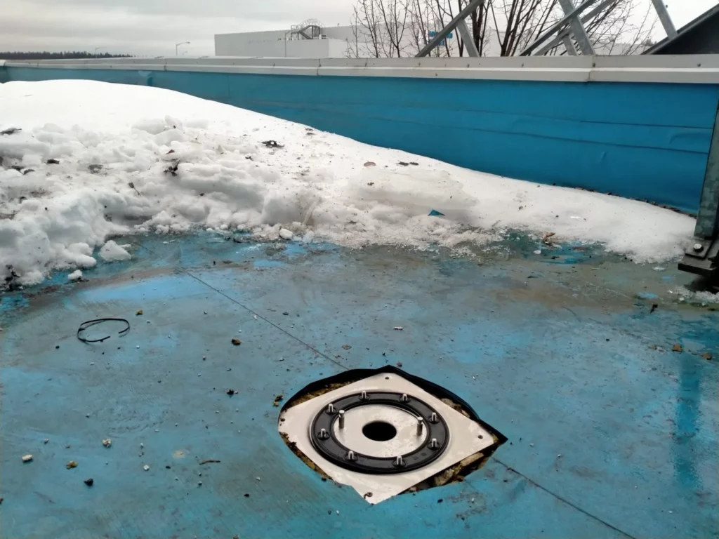 Замена водосточной воронки Geberit на кровле Завода Hyundai Steel