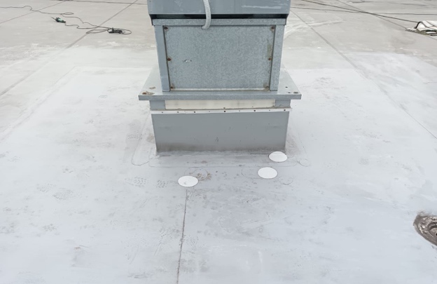 2. Устранение обнаруженных повреждений вокруг люков и вентиляторов дымоудаления: постановка заплат, постановка гидроизоляционной полосы на сварной шов.