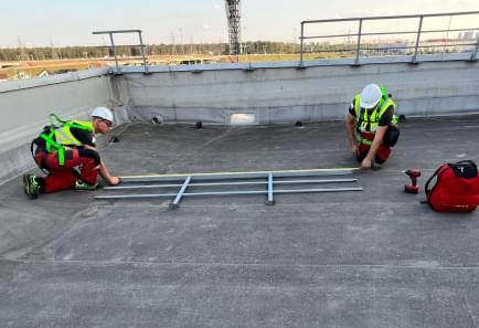 Анкерная линия на кровле монтируется, когда необходимо обеспечить безопасное выполнение работ по монтажу новой или ремонту старой кровли. Когда для эксплуатации работникам требуется перемещаться по кровле крайне редко.