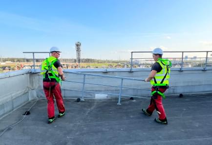 Анкерная линия дешевле ограждений, однако использовать её могут только специально обученные работники с применением 5-точечных поясов, верёвок, карабинов и других средств индивидуальной защиты.