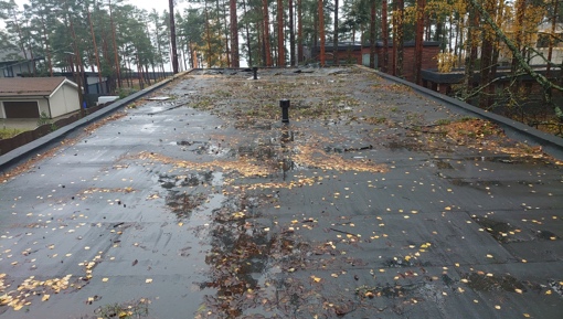 2. В результате протечек, в утеплителе и на основании кровли останется вода. Наплавляемая кровля — паронепроницаемый материал и не способна эффективно выводить влагу из кровельного пирога в атмосферу. Новая битумная кровля фактически запечатает влажный пирог кровли.