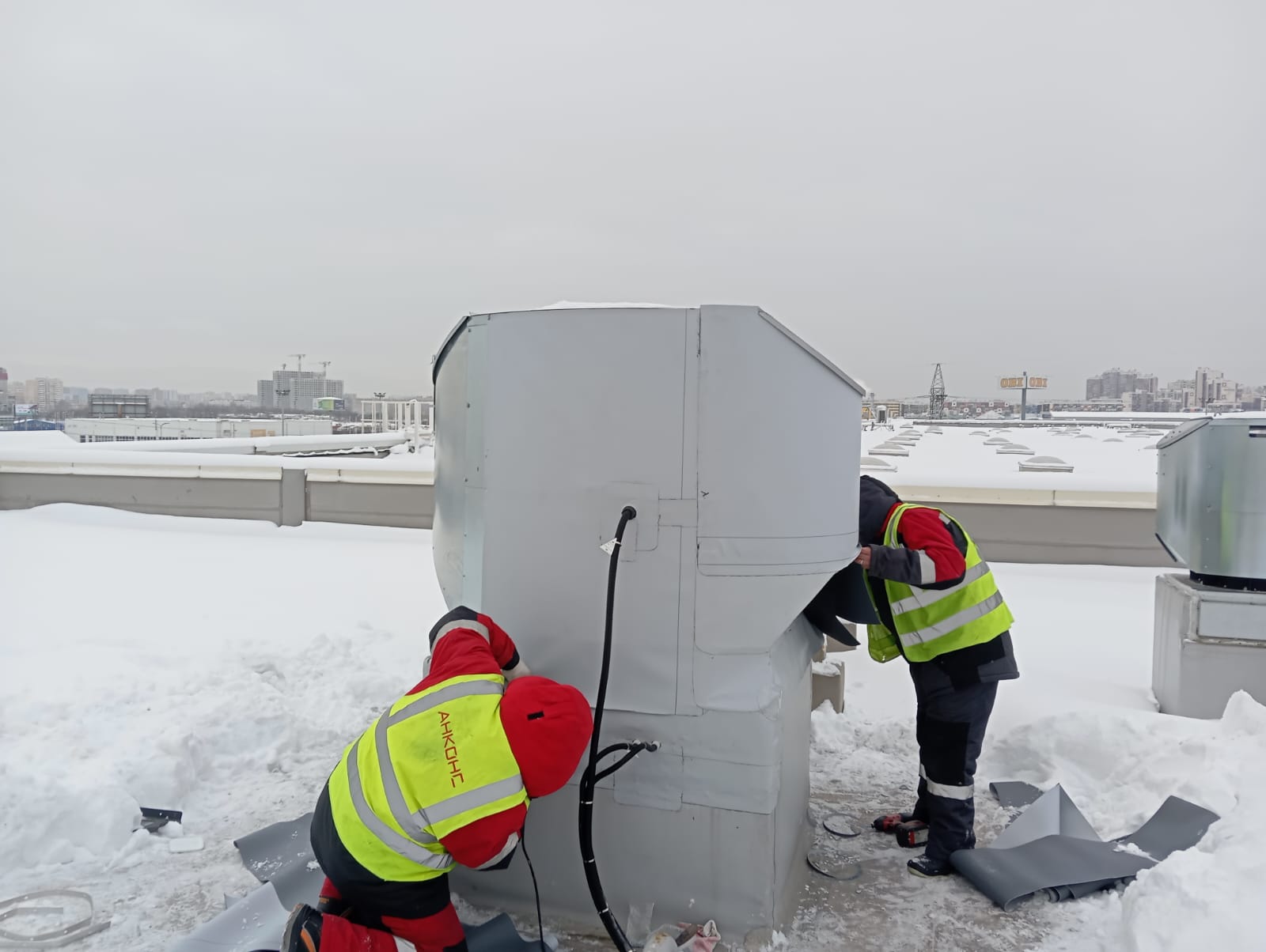 Замену локальных участков битумной кровли в зимнее время года проводят с использованием тепляков — теплиц на кровле. Однако их монтаж приводит к удорожанию ремонта на 20-30%.
